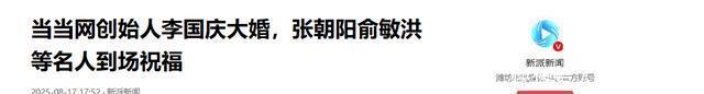 李国庆身着剪裁得体的深色西装,头发梳理得一丝不苟,脸上洋溢着幸福的笑容,妻子张丹红则一袭简约白纱,盘起头发,温婉大方。 前来参加婚礼的嘉宾皆是各界有头有脸的人物,搜狐创始人张朝阳、新东方创始人俞敏洪等好友纷纷到场,共同见证这一幸福时刻。